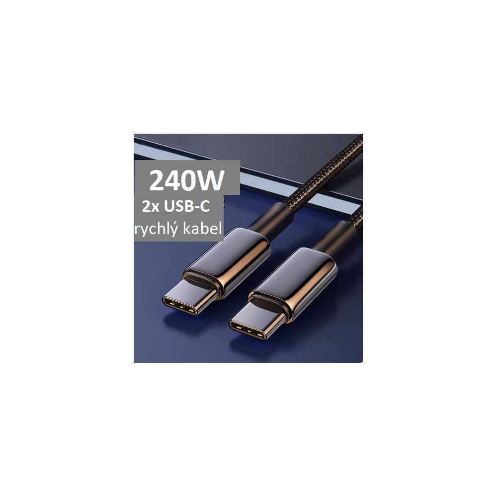 rychlonabíjecí datový kabel 2x USB-C, 2m,240W opletený, pružný, černý