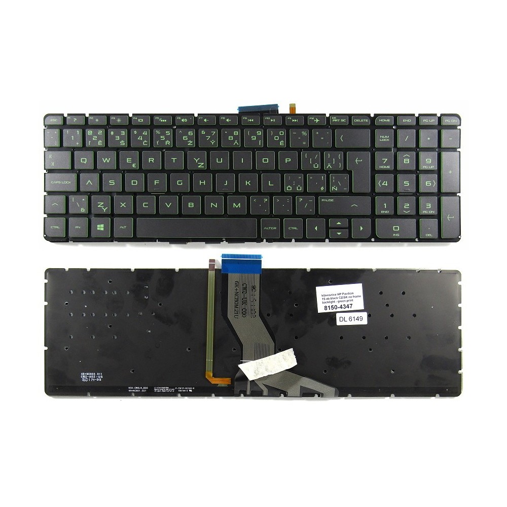 česká klávesnice HP Pavilion 15-AB, 15-AK černá CZ/SK , no frame - podsvit - green print