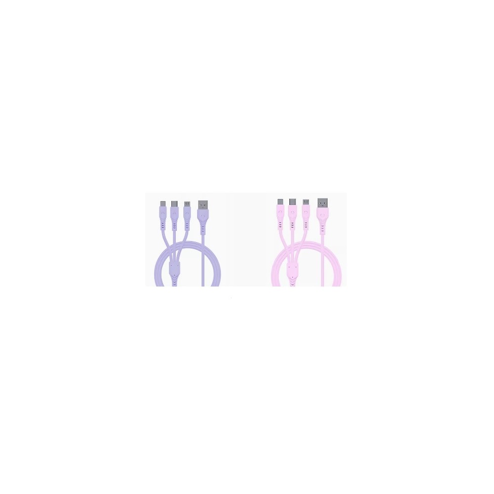 3 USB rychlonabíjecí kabel - micro, C, Apple - 1m, růžový