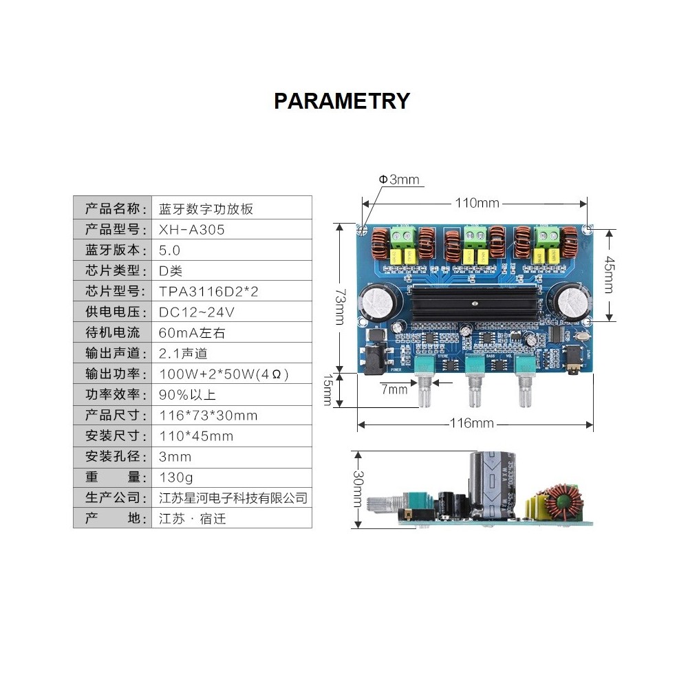 zesilovač XH-A305 2.1 BT 100W 2*TDA3116D2