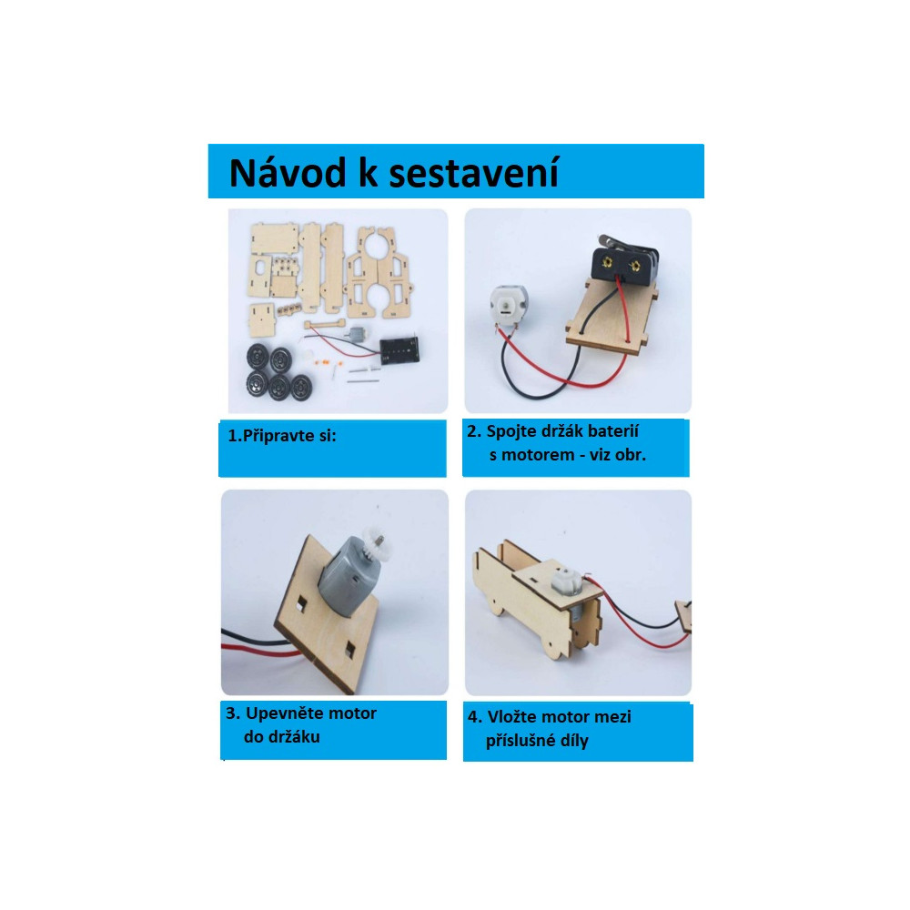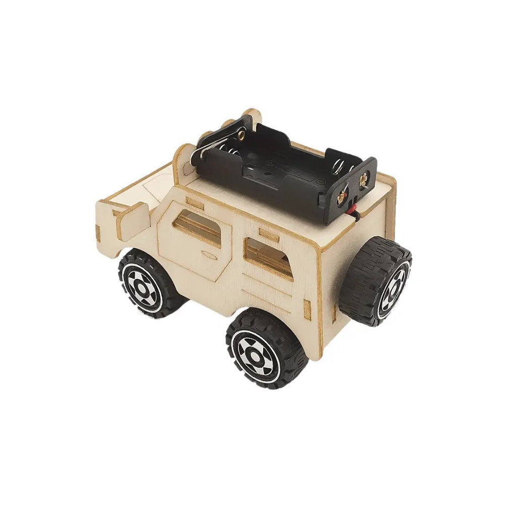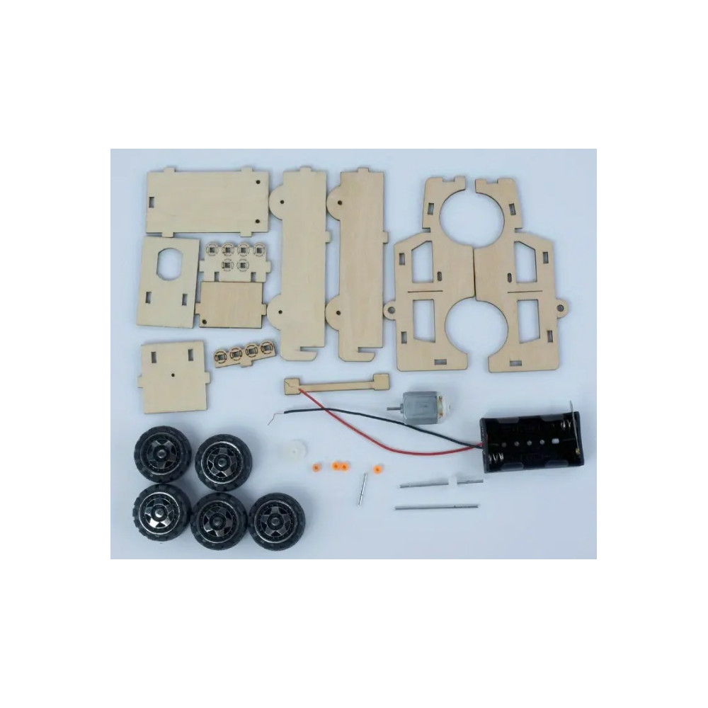 Bausatz - Konstruktionsbausatz - zum Erstellen eines eigenen Modells eines Geländewagens mit Elektromotor, batteriebetrieben.