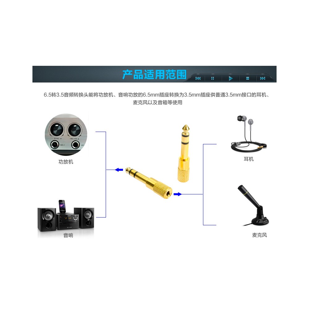 Es dient zum Anschluss einer 3,5-mm-Klinke an eine 6,3-mm-Buchse
