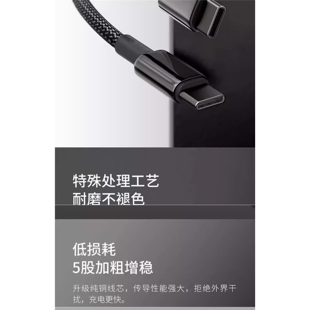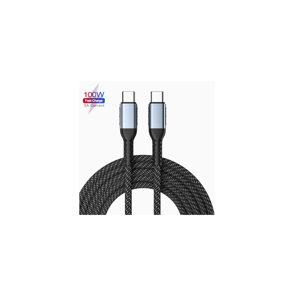 Schnellladedatenkabel 2x USB-C, 2m, 240W geflochten, flexibel, schwarz