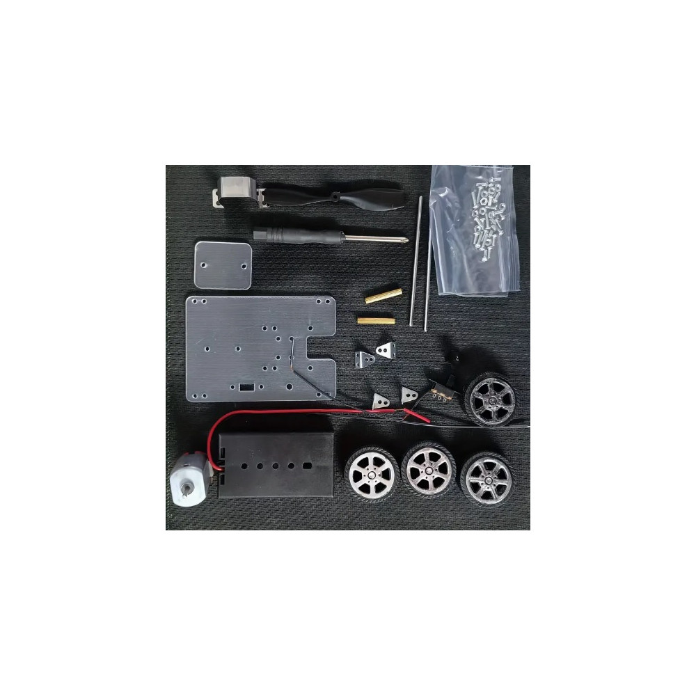 Kit - construction kit - for creating a model of a vehicle, powered by a propeller. Experimental toy model, powered by 2 AA batteries