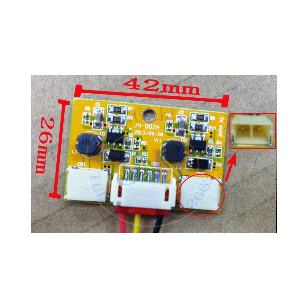 size 42x26mm, power supply 12-20V, 6-pin connector, input connection - see back side