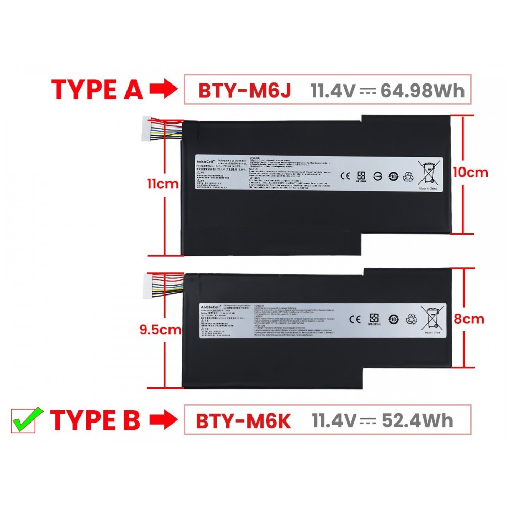 Battery BTY-M6K for MSI MS-16K3 GF65 GF63 MS-17B4 - 11.4V 4600mAh