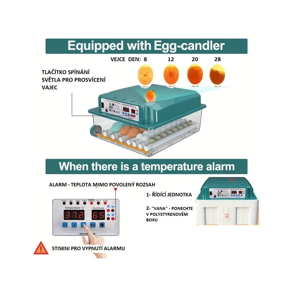Chytrý automatický inkubátor, liaheň 36 vajec, sliepka