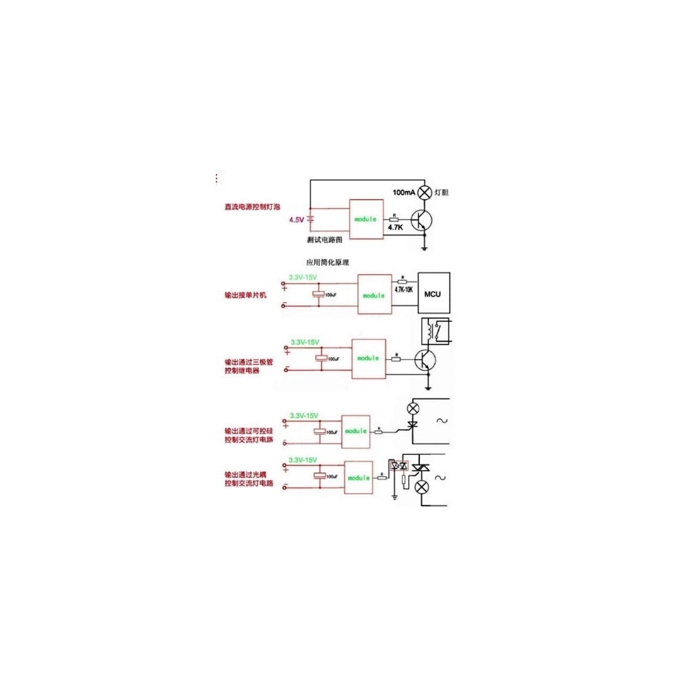 3, výstupný port modulu senzora OUT port môže byť priamo pripojený k mikrokontroléru IO možno tiež priamo riadiť 5V relé; Pripojenie: VCC-VCC; GND-GND; OUT-IO