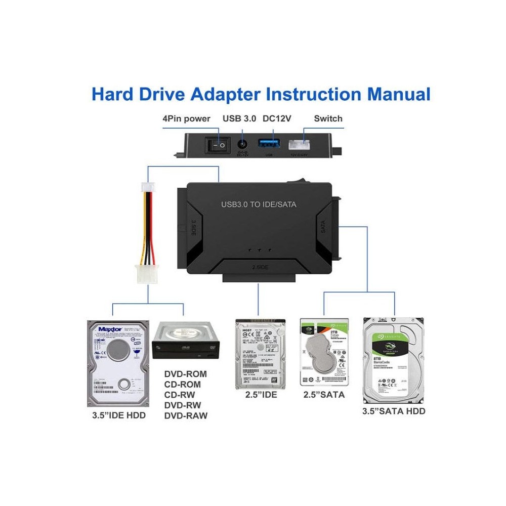 USB 3.0 to Sata / IDE konverter umožňuje pripojiť 2.5 "/3.5" IDE / SATA disky do vášho počítača cez USB Port.