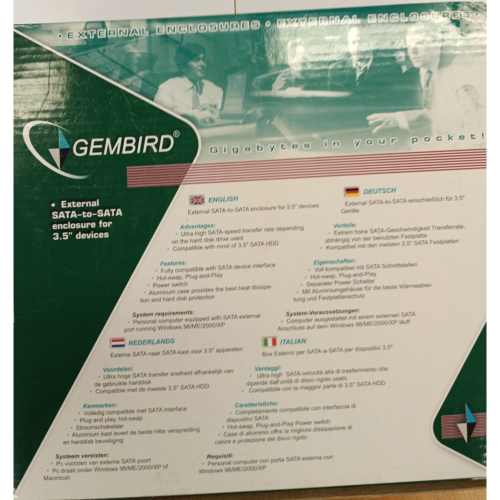 Externý box GEMBIRD pre HDD 3,5" SATA, strieborný, SATA pripojenie, vrátane napájacieho adaptéra