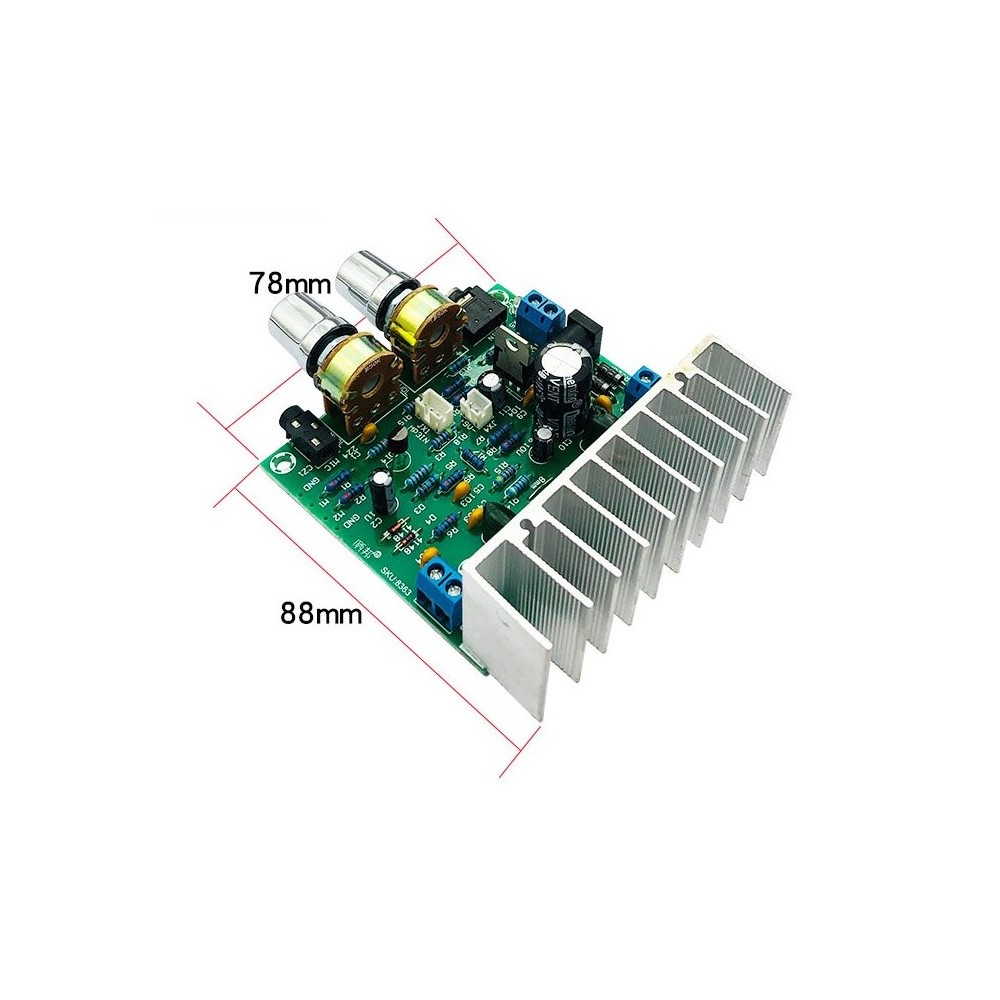 Veľkosť dosky [dĺžka 84 * 78 mm vrátane radiátora] rozteč potenciometra 20 mm, montážny otvor potenciometra 7 mm, priemer upevňovacieho otvoru pre dosku plošných spojov 3 mm